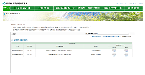 詳細は以下のURLの環境省 環境技術実証事業のウェブサイトをご覧ください。